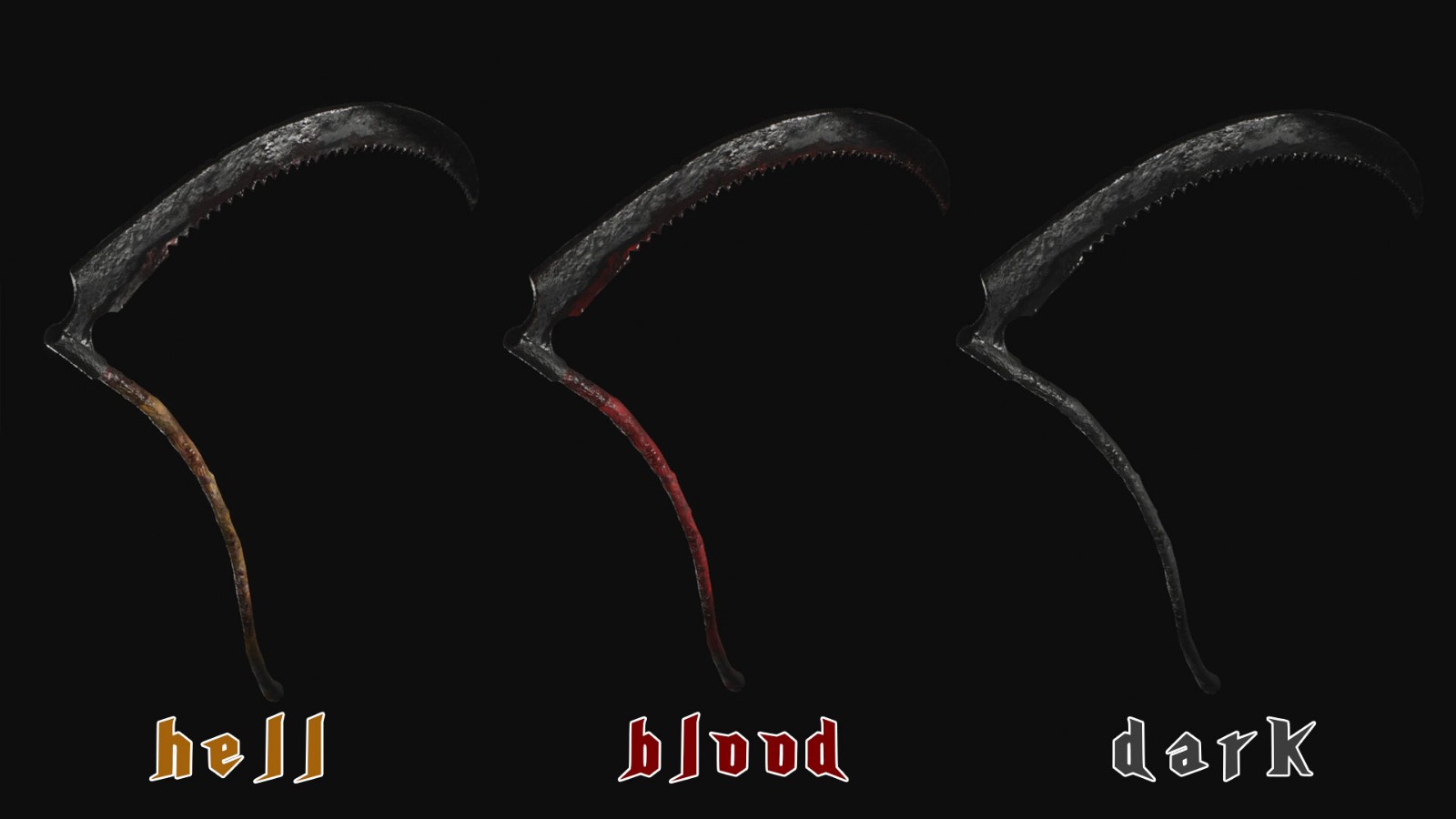 Replace the Devil Swords Dante and Sparta with Hell Kenna's sickle. There are three different colors: classic (hell), red (blood) and black (dark).
