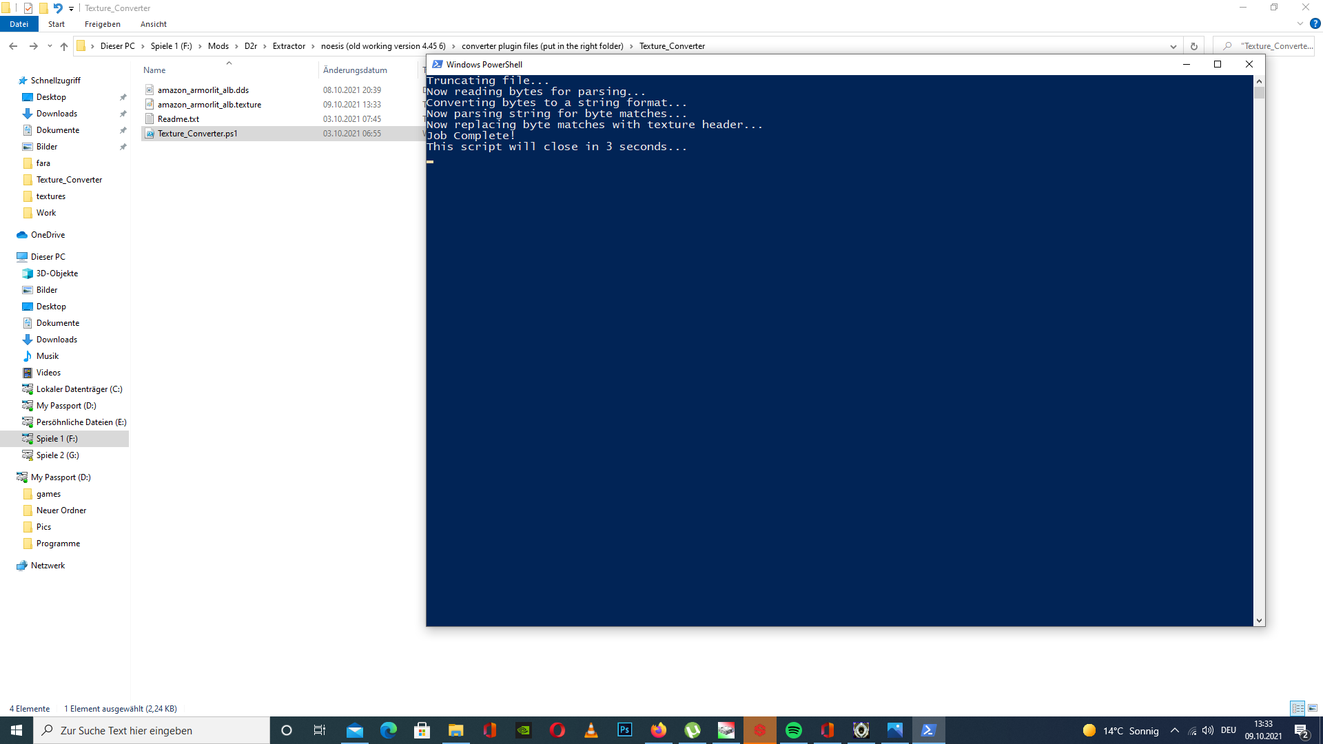 Then put the dds in the same directory as Texture_Converter.ps1, right-click to open Texture_Converter.ps1 and run it with powershell. In this way, it will be converted back to the Diablo 2 model material file for use by the mod. . . .