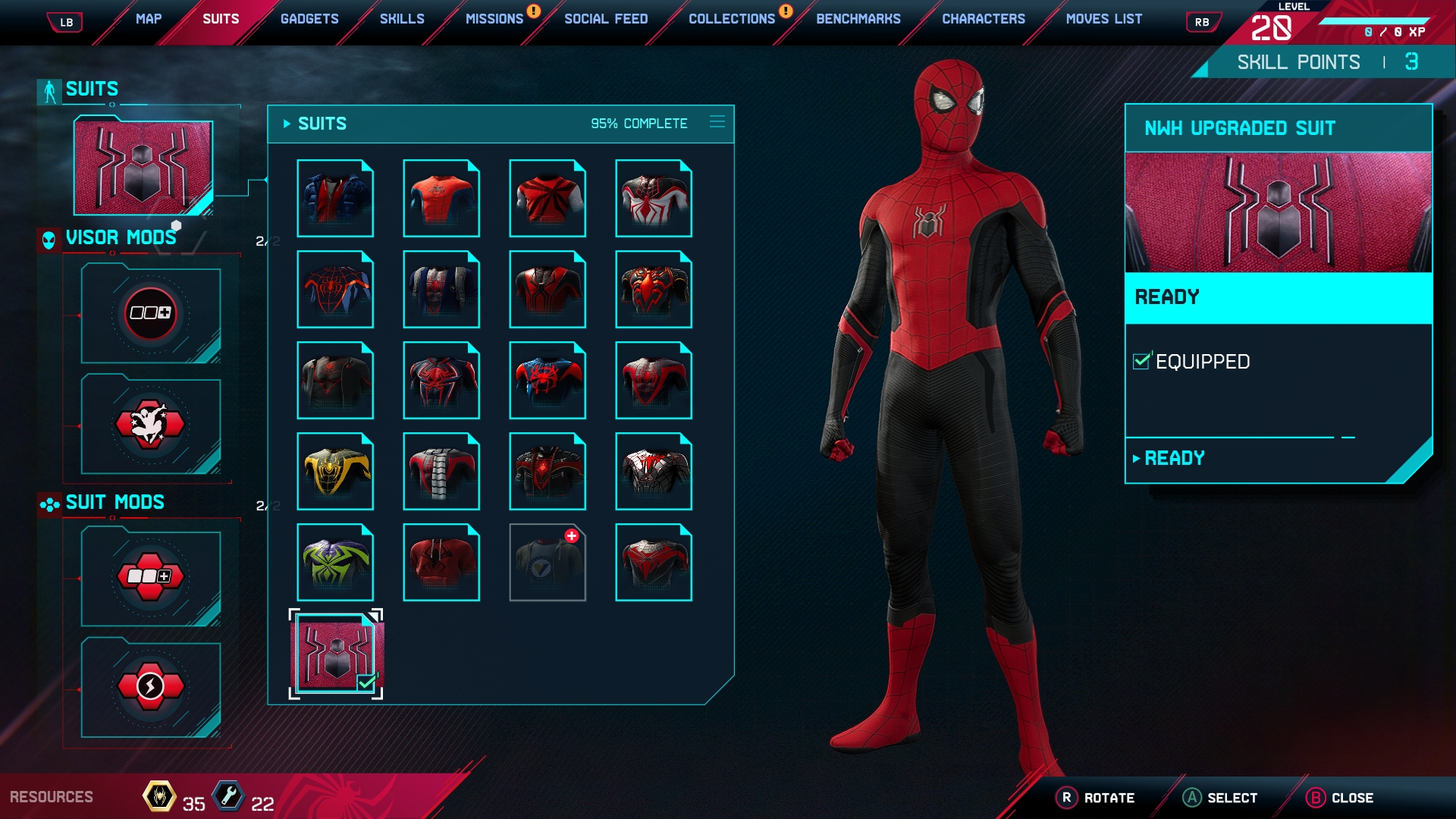 Adds the No Way Home Upgraded Suit worn by Tom Holland in Spider-Man: No Way Home.
