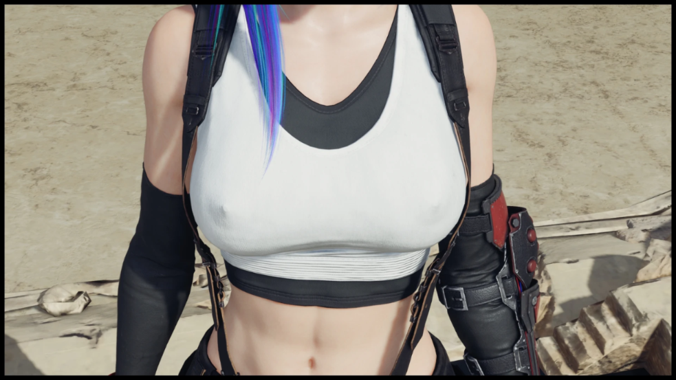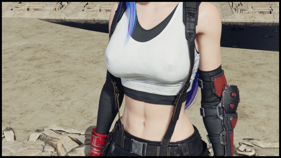 This small mod for Final Fantasy 7 Rebirth adds protruding nipples to Tifa when using her default outfit. This file is compatible with all mods.